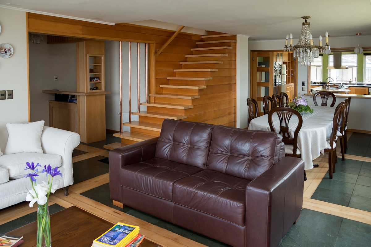 Si estás de vacaciones es un excelente lugar para alojar. 2 dormitorios con 2 camas cada uno, baño privado, patio amplio para descansar, comer algo rico, leer y disfrutar del jardín. Incluye desayuno con productos de la zona. Tenemos servicio extra de lavandería y almuerzo. Queda a pasos de la carretera y al lado de un supermercado grande. Un barrio seguro y excelente ubicación, puedes disfrutar de caminatas en la noche.