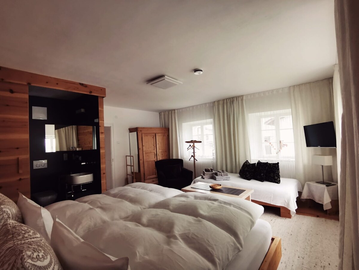 "El estilo de vida elegante se encuentra con el estilo alpino" En nuestro bed and breakfast familiar puedes disfrutar de un descanso fantásticamente relajante de todo. Las habitaciones están amuebladas con mucho cuidado y atención al detalle. Solo alta calidad ...