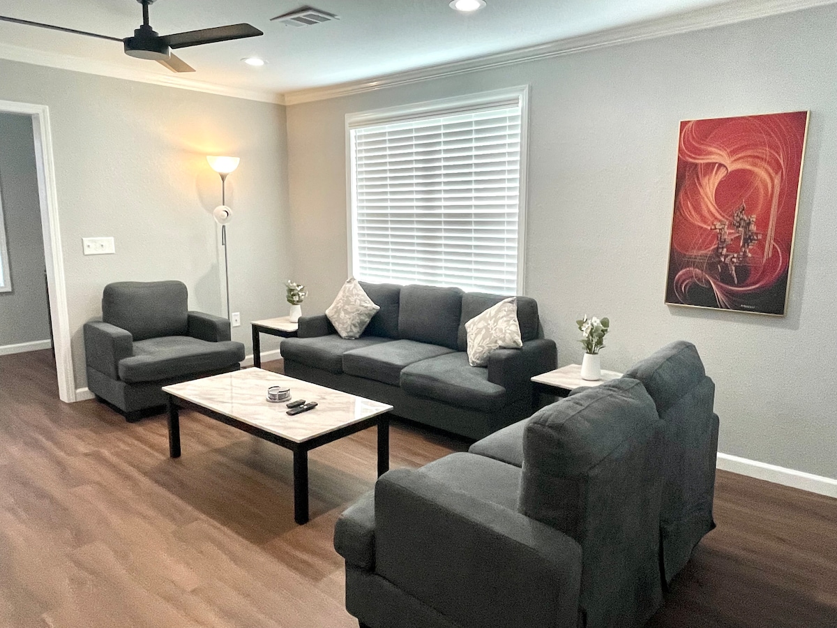 Stay in a private executive suite at a remodeled historic home locally known for its connection to the Earp family. This room offers a quiet, professional environment ideal for business travelers and defense contractors. The space provides a calm atmosphere for rest or focused work. Guests share access to the kitchen, laundry, and living areas. Located minutes from downtown Camden and near major defense companies, this room is well suited for short or extended professional stays.