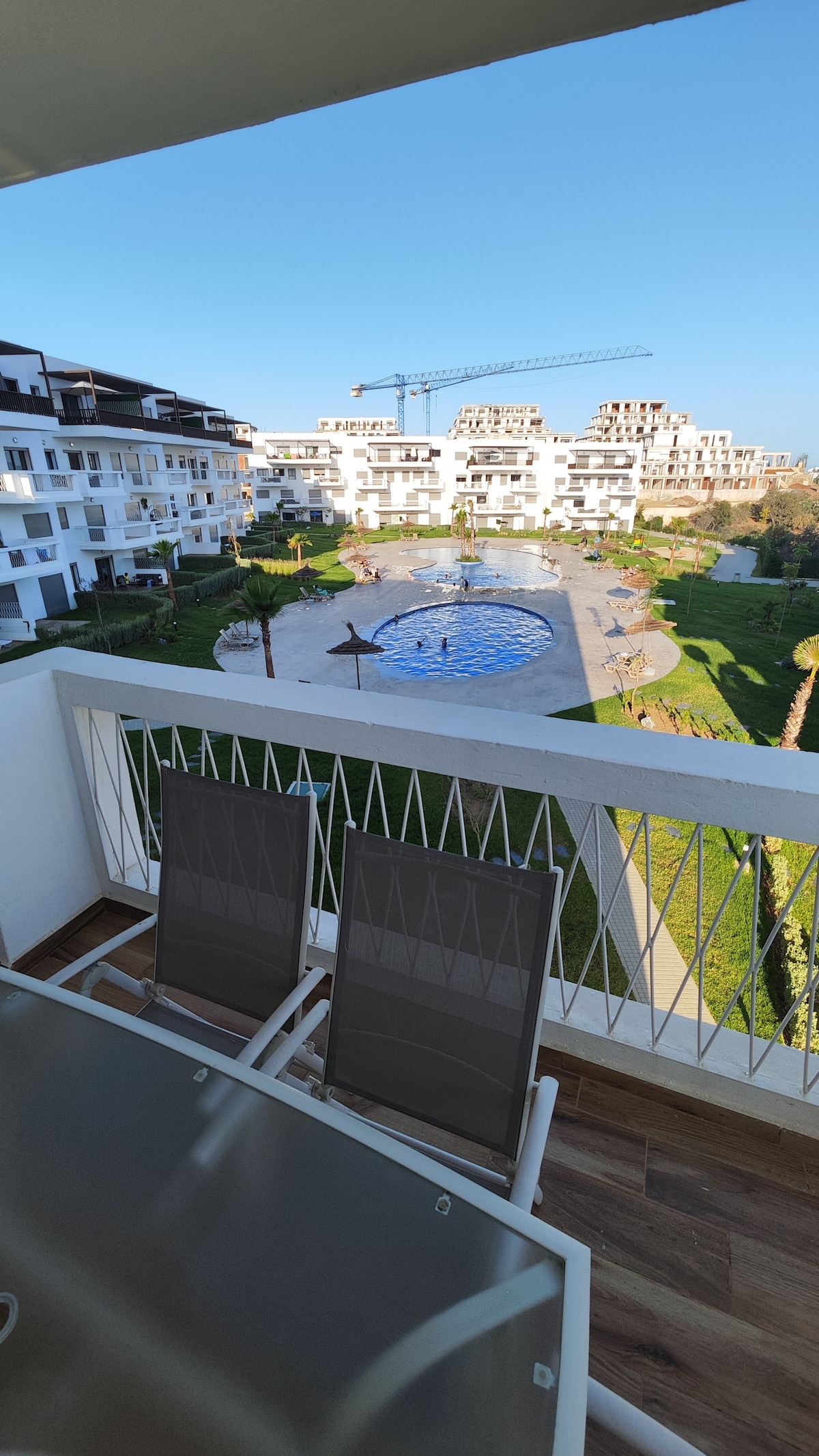 Joli appt neuf dans une résidence privée sécurisée avec 3 piscines, un espace jeux enfants, un parking gratuit sur place et à 5 min de la plage. L’appt est composé d'1 ch à coucher avec SdB, un salon, une salle à manger, une cuisine bien équipée, une salle d’eau et une grande terrasse bien aménagée. Proche de toutes commodités (Café, restaurant, pharmacie et supermarché), l'appartement est à 10 min de Martil et M'diq.