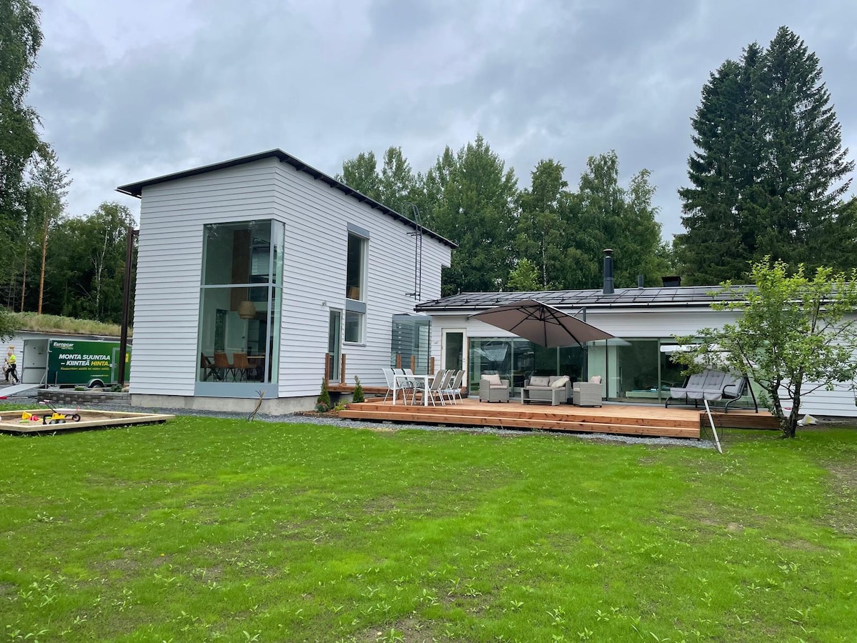 Esta elegante casa de lujo es perfecta, especialmente para una familia más grande. El departamento está ubicado en un gran suburbio de la ciudad, al mismo tiempo en el borde del bosque. Tienes acceso a una villa de unos 200 metros cuadrados, que también tiene una bañera de hidromasaje de invierno. Con buena suerte, puedes ver la aurora boreal al mismo tiempo que te relajas en el jacuzzi exterior. Los servicios del centro están a solo 10 kilómetros de distancia. Hay espacios de estacionamiento para tres automóviles en el patio, así como un punto de carga para autos eléctricos. No te decepcionarás en este lugar.