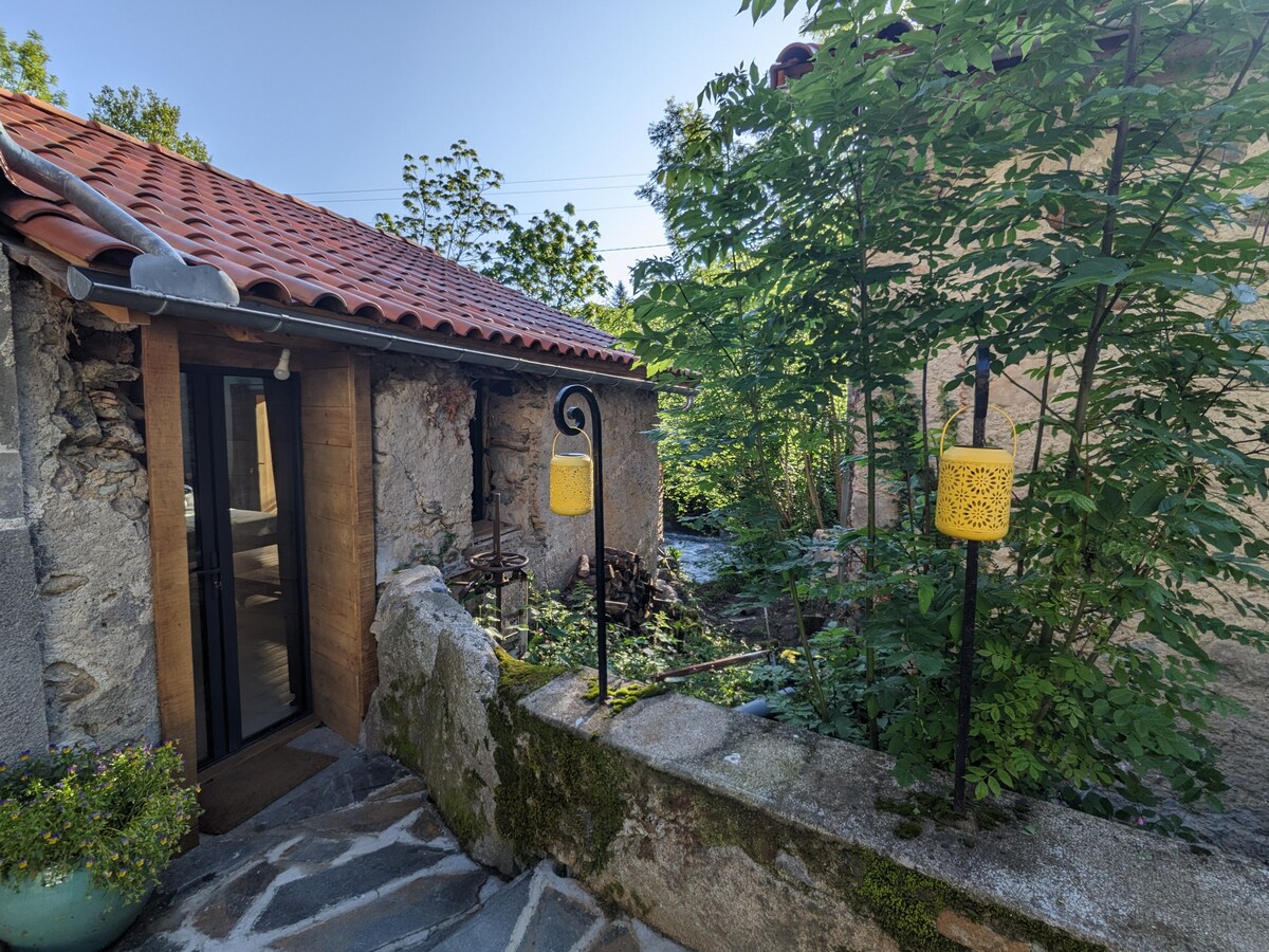 Cabaña junto al río con terraza privada + bañera de hidromasaje