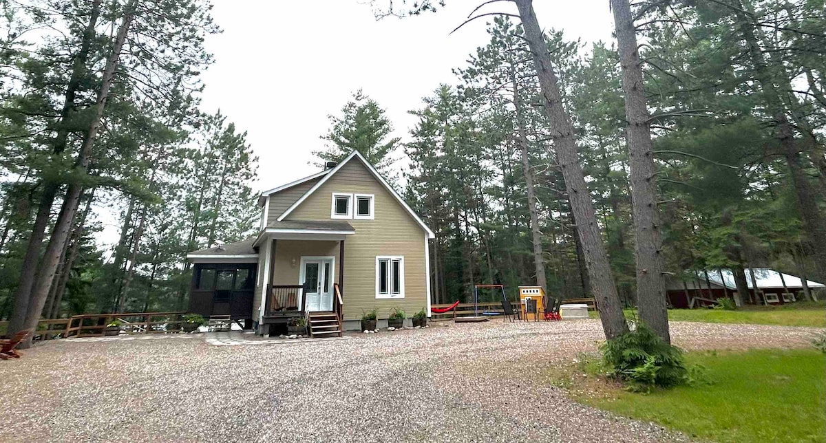 Ubicado en una parte muy privada y tranquila de Lac Johnson, este refugio está enclavado entre los árboles con una hermosa vista al lago. Se ha invertido mucho tiempo y reflexión en crear una escapada tranquila, cómoda y limpia con muchos extras para mantenerte ocupado. Esta casa del lago de tres dormitorios y dos baños completos tiene capacidad para ocho personas cómodamente y cuenta con un amplio espacio interior y exterior donde podrás relajarte y disfrutar.