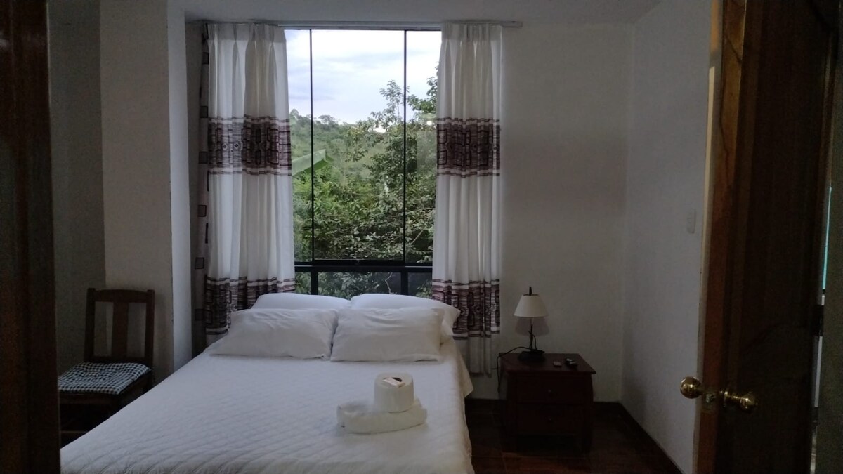 Un lugar súper encantador tipo rústico y muy cerca al centro y a la vez en un lugar cerca la naturaleza. Consta de 2 habitaciones, 3 camas de 2 plazas y 1 cama de 1plaza y media, tiene 1 baño completo, una cocina con gas y menaje para su uso, Sala con sofás y TV Smart con Netflix y otros, tenemos WiFi y cochera gratis, no terma, brindamos toallas y jabones para su estadía.