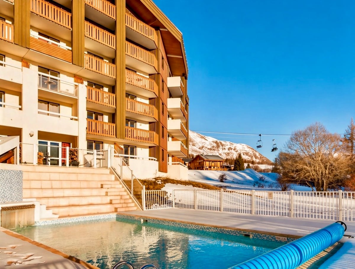 Rsd Alpages du Corbier 4 pers Ski al lado de la piscina