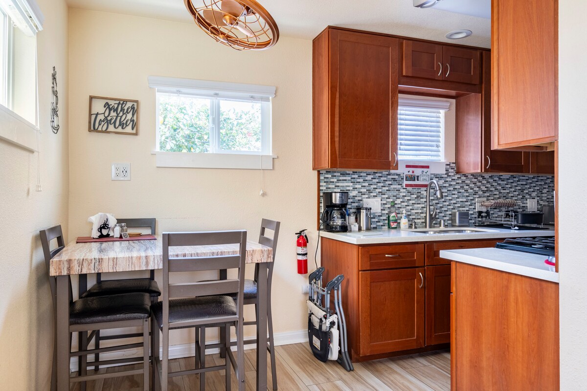 GENIAL PARA STAYCATIONS, TELETRABAJO, ESCAPADAS, PERO ABSOLUTLEY NO HAY FIESTAS. Hermosa casa de campo de 1 cama y 1 baño ubicada a solo 5 CUADRAS DE LA PLAYA DE TH. Cama tamaño queen en el dormitorio y sofá cama en la sala de estar. La cocina está totalmente equipada e incluye nevera con máquina de hielo. Baño: ducha y artículos de tocador básicos. Toneladas de comodidades: ducha al aire libre, tablas de boogie, sillas/toallas de playa, paquete de juegos, barbacoa, chimenea y mucho más. Estacionamiento en el garaje incluido.