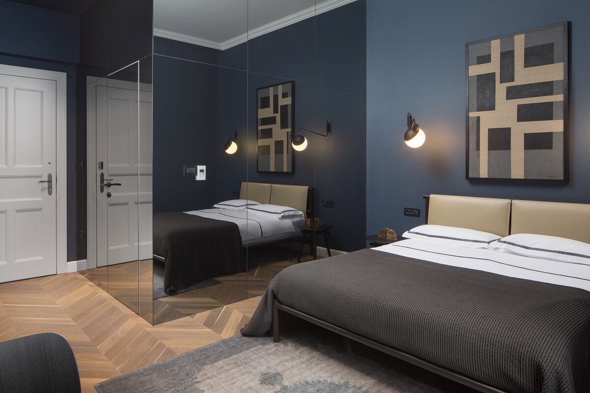Esta elegante habitación a prueba de sonido de 17 m2 con cama tamaño king con conexión inalámbrica a Internet, TV de pantalla plana con canales por cable, armario, escritorio con sillas y aire acondicionado. La habitación tiene baño privado con secador de pelo y ducha.