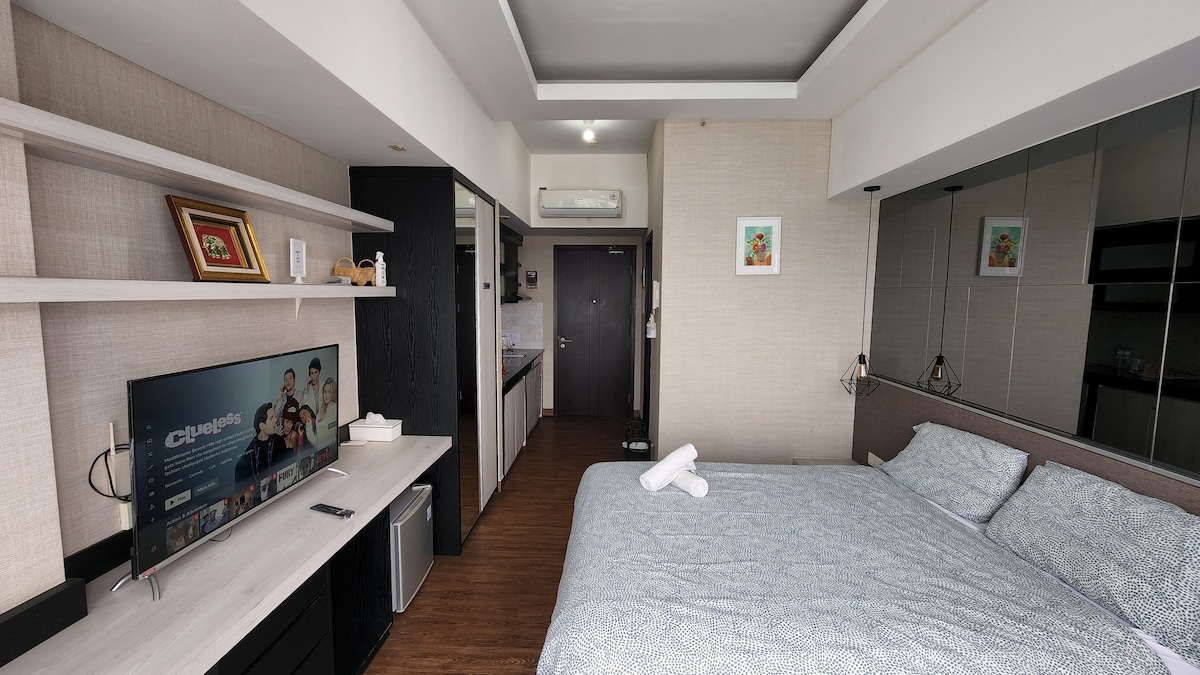 Un acogedor apartamento estudio con un nuevo totalmente amueblado que te mimará con internet ilimitado de 50 mbps y cable de televisión para tu entretenimiento. Acceso gratuito a la piscina y el gimnasio Todo es muy sencillo , el check-in sin restricción de horario, simplemente toma la llave del buzón Salida autónoma: simplemente devuelve las llaves al buzón Tenemos algunas habitaciones estudio en la misma planta, comunícate con nosotros si lo necesitas. A 5 minutos en auto del centro comercial AEON y la Universidad Prasetya Mulya.