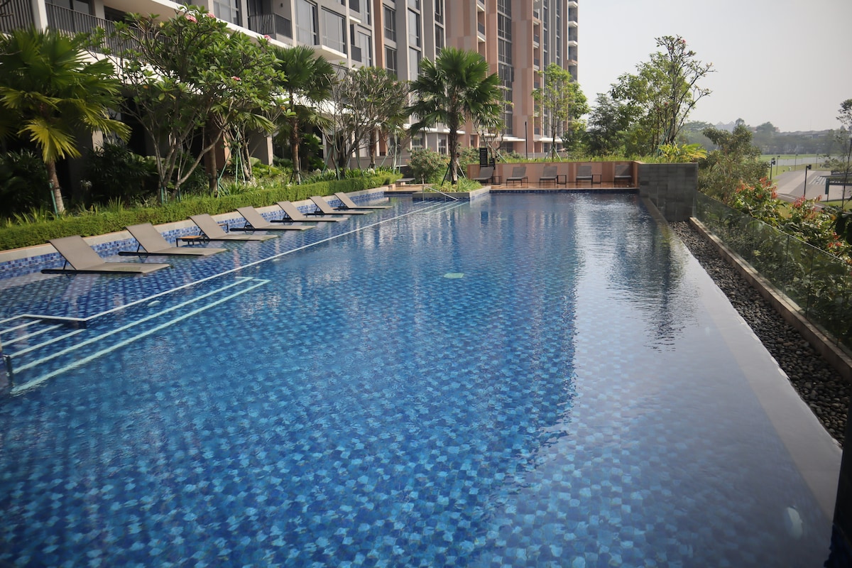 Disfruta de una experiencia con estilo en un lugar céntrico cerca de instalaciones de entretenimiento, compras y lugares de recreación Instalaciones de la habitación - 1 cama tamaño king - Wifi + Netflix - Calentador de agua - Frigorífico - Dispensador - Aire acondicionado - TV - Tocador - Secador de pelo - Plancha - Cocina y utensilios Instalaciones del edificio - Piscina - Gimnasio - Cafetería - Minimercado * Indomaret * Cirkel K 24 horas - Aparcamiento (de pago) - Lavandería Entretenimiento y compras - Aeon Mall - Ice BSD - The breeze bsd - Q big Mall