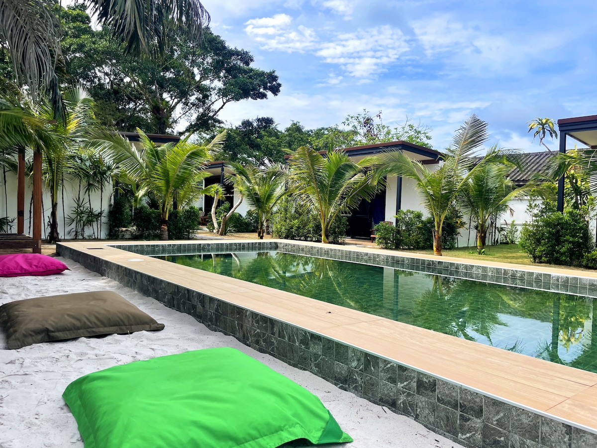 Aqua Boutique Resort & Pool es un oasis de tranquilidad enclavado en la vegetación de Koh Phayam. Cuenta con una preciosa piscina de agua salada donde puedes refrescarte en días tropicales calurosos y un jardín salpicado de palmeras. Estratégicamente ubicado frente al mar, pero a pocos pasos del centro, ofrece el equilibrio perfecto de relajación y comodidad para explorar la isla. La estructura recién inaugurada combina la comodidad moderna con el ambiente relajante de la isla, ideal para aquellos que buscan escapar de la rutina.