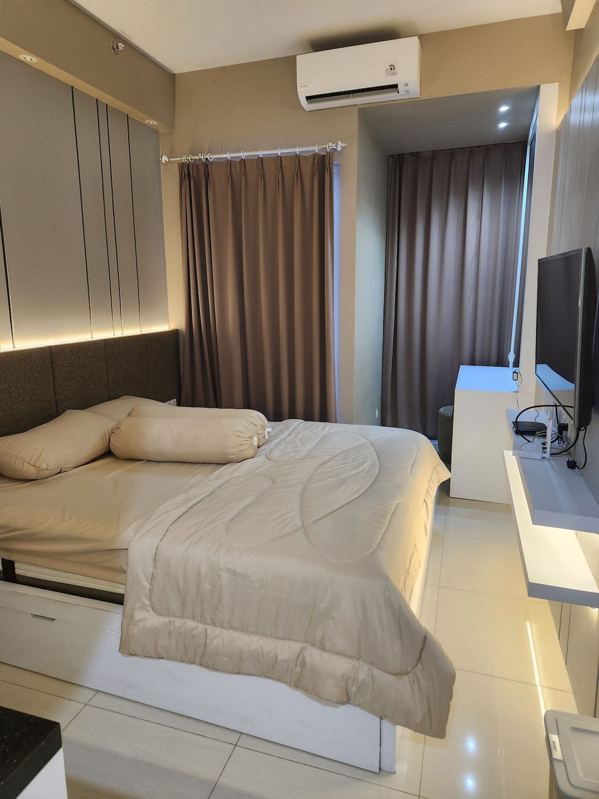 Un apartamento estudio cómodo y elegante, unido al centro comercial más grande de Surabaya. Fácil acceso al supermercado, todo tipo de restaurantes y cerca de algunos de los cafés más de moda de la ciudad. Este lugar tiene todo lo necesario para tu estancia: una cama grande, ducha caliente, Netflix, TV, wifi y nevera. El horario de llegada y salida puede ser flexible (llegada anticipada a partir de las 10:00 o salida después de la hora establecida hasta las 14:00) siempre y cuando no haya otro huésped que venga o se hospede antes. Hay cama supletoria disponible. Nos vemos 😁