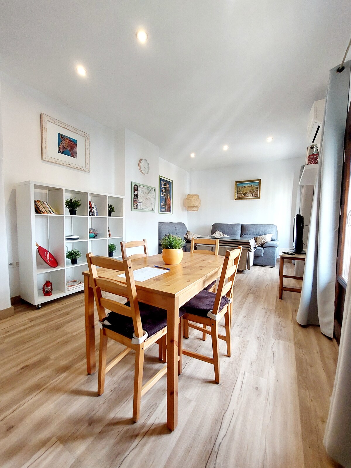 La Carrera del Darro es uno de los parajes más románticos y de mayor encanto de Granada. Este espacio, mundialmente conocido por su original vista de la Alhambra en contrapicado, ofrece una imponente y majestuosa visión del palacio nazarita que embruja a todo visitante. Justo entre uno de los puentes históricos de este paseo, El Puente Espinosa, y los restos del Puente Cadi podrás alojarte en este piso con cuidada decoración que lo hace único para una estancia inolvidable sobre el río Darro