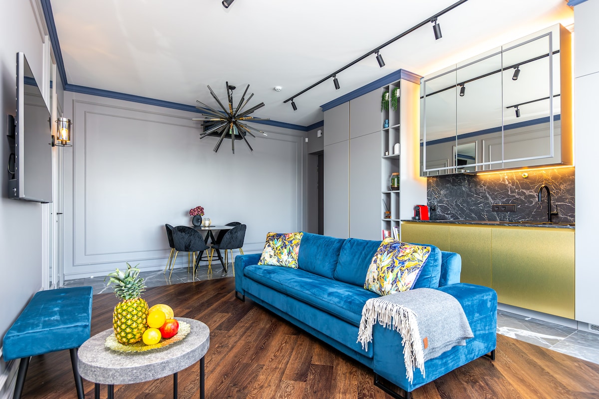 Apartamento en la residencia «Hill Garden». Al amueblar el apartamento, una de las principales consideraciones que tuvimos fue combinar funcionalidad y estilo. El lugar es ideal tanto para una pareja como para una familia, con un dormitorio separado y un sofá cama en la sala de estar que se prepara en solo unos segundos; nos sorprendió lo fácil que es plegarlo y desplegarlo. ¡Estamos deseando darte la bienvenida a Kunigiskes y estamos convencidos de que estarás deseando volver!