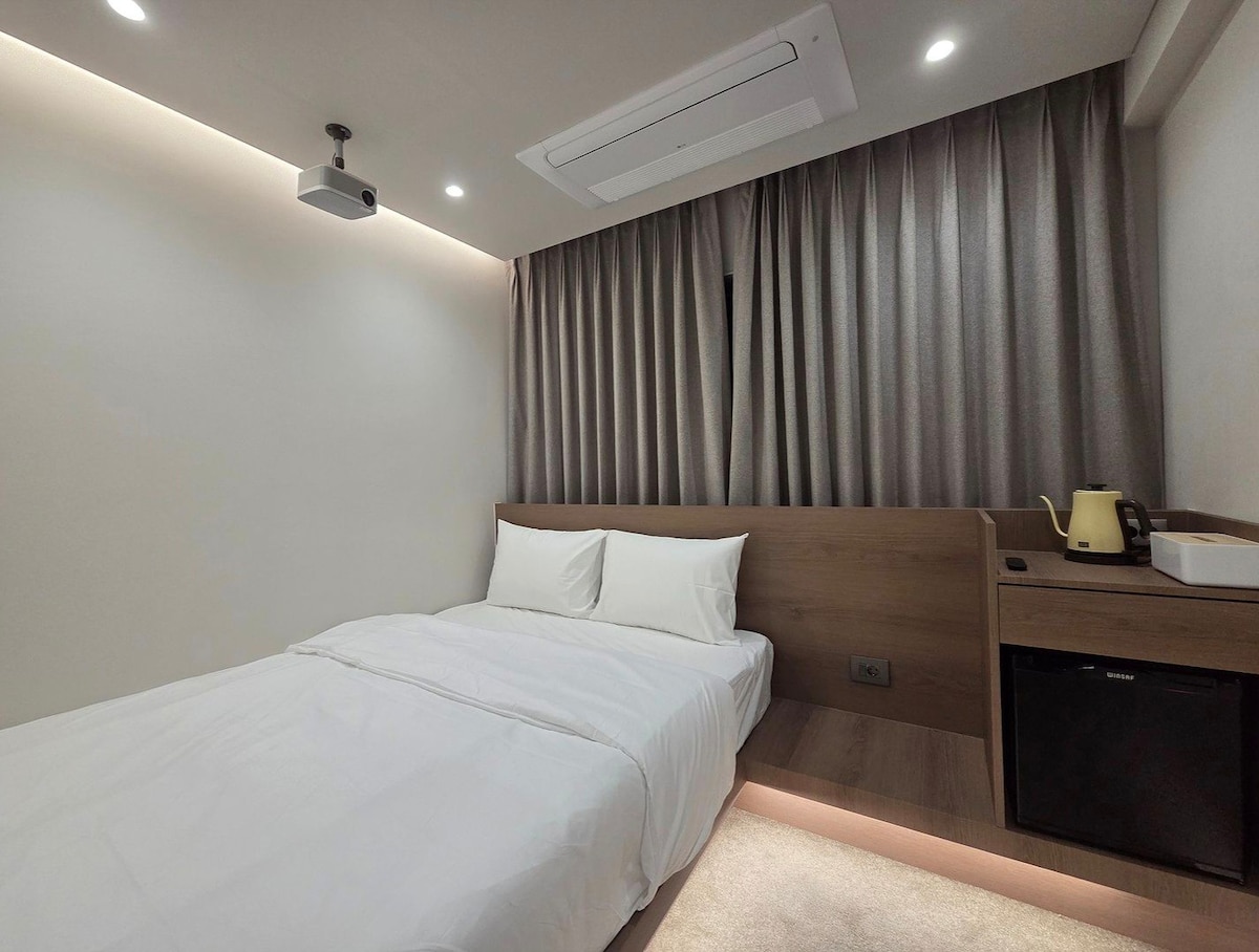 Stay105 행궁 본 숙소는 합리적인 가격의 셀프 스테이 숙소입니다. 호텔급 풀서비스를 기대하시는 분보다는 깔끔하고 조용한 숙박을 원하시는 분께 적합합니다. 행궁동 겨울 골목에 있는 편안한 숙소입니다.” -객실 안내 포근한 더블침대와 호텔급 화이트 침구 벽걸이 TV, 에어컨, 청결한 욕실 완비 간단한 소지품을 보관할 수 있는 옷걸이와 선반 부드러운 조명과 미니 테이블로 완성된 감성 공간 -공간의 매력 햇살 아래 커피 한 잔의 여유를 즐길 수 있는 조용한 객실 따뜻하고 차분한 인테리어로 마음이 안정되는 공간 혼자 혹은 둘이 머물기 좋은 크기와 구조 -위치 수원 화성행궁에서 도보 5분 거리, 행궁동 카페거리와 전통시장, 공방거리가 가까워 도심 속에서도 여유로운 여행을 즐기실 수 있습니다. Stay105 행궁에서 하루의 쉼과 감성을 충전하는 시간을 가져보세요.