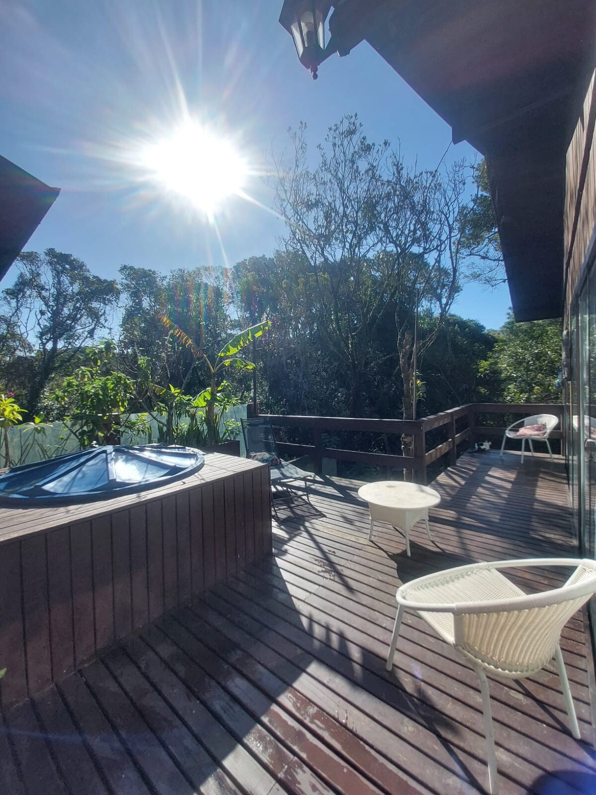 Ven a vivir una experiencia inolvidable en nuestro Chalet en medio de la naturaleza. Ya sea por el mar azul, el verde de las montañas o simplemente relajarse y disfrutar del ambiente. Con vistas al mar de Florianópolis y la Serra do Tabuleiro, ubicado en una región privilegiada cerca de hermosas playas y cascadas, aquí encontrarás tranquilidad combinada con una buena ubicación, a menos de 1 km de la BR 101 en un camino de tierra. NOTA* No recomendado para vehículos rebajados o muy bajos
