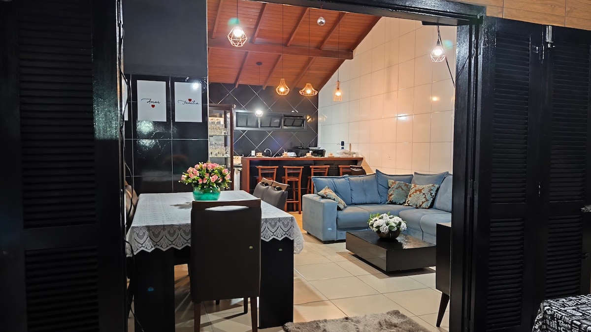 El alojamiento está en el último piso, con piscina privada y hermosas vistas de Morro do Cambirela. Tiene una cocina completa, parrilla interior y exterior, balcón con hamaca para descansar, Wi-Fi, TV inteligente con Netflix, dos camas de matrimonio, dos camas individuales y un sofá cama. Estacionamiento grande, cerrado y seguro. Se encuentra a 1 km de BR-101, KM 218, cerca de playas, cascadas y tiendas. Vivo abajo; el espacio es privado, solo usamos la misma puerta y estamos disponibles si necesitas algo.