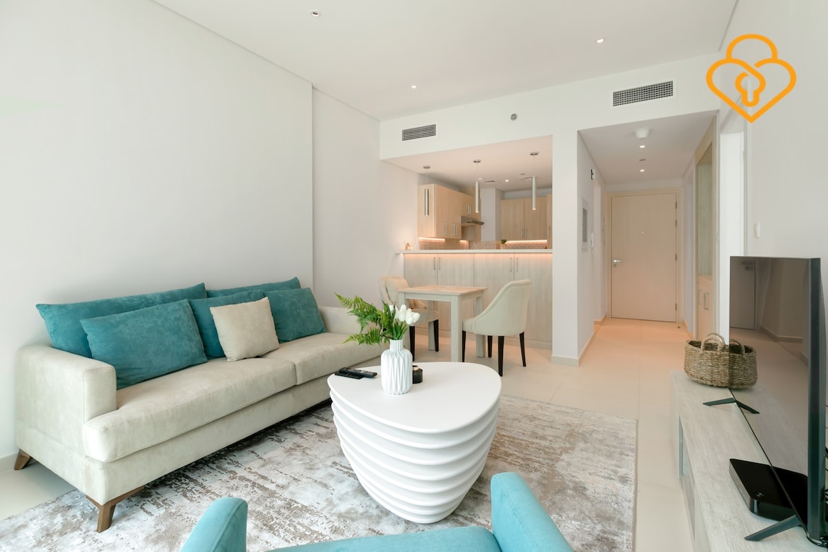 Situado en el corazón de Palm Jumeirah. West Beach es el punto de acceso para una de las playas más hermosas de Dubái, los mejores clubes de playa y el centro comercial Nakheel a solo 5 minutos. Este nuevo apartamento luminoso con buen gusto con balcón en el piso 11 con vistas a Royal Atlantis está totalmente equipado para que disfrutes de tu estancia con una cama tamaño king, cocina y TV inteligente de alta definición con Netflix, AppleTV+ y Amazon Video. Tendrás acceso gratuito a la piscina infinita en la azotea, a la playa privada, al gimnasio y al estacionamiento.