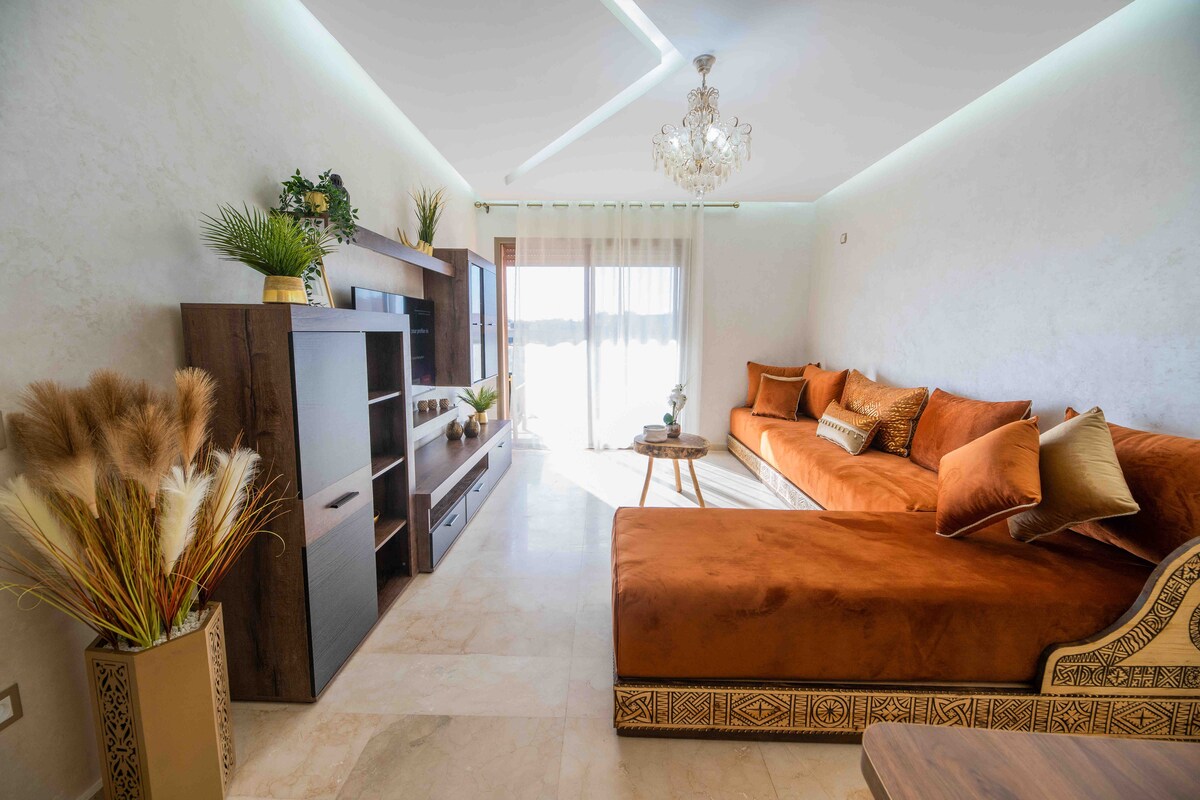 ¡Te damos la bienvenida a tu escapada tranquila en Marrakech! 🏡 Este elegante apartamento inteligente de 2 dormitorios es un refugio tranquilo donde la comodidad moderna se encuentra con la magia de la Ciudad Roja. 🌅Disfruta de fascinantes puestas de sol desde el balcón. Con Internet de fibra rápida, es perfecto para trabajar a distancia o transmitir👩💻. 📍Nuestra ubicación privilegiada cerca de Palooza Land te da fácil acceso a las principales atracciones. Es ideal para viajeros solitarios, parejas o huéspedes de negocios.