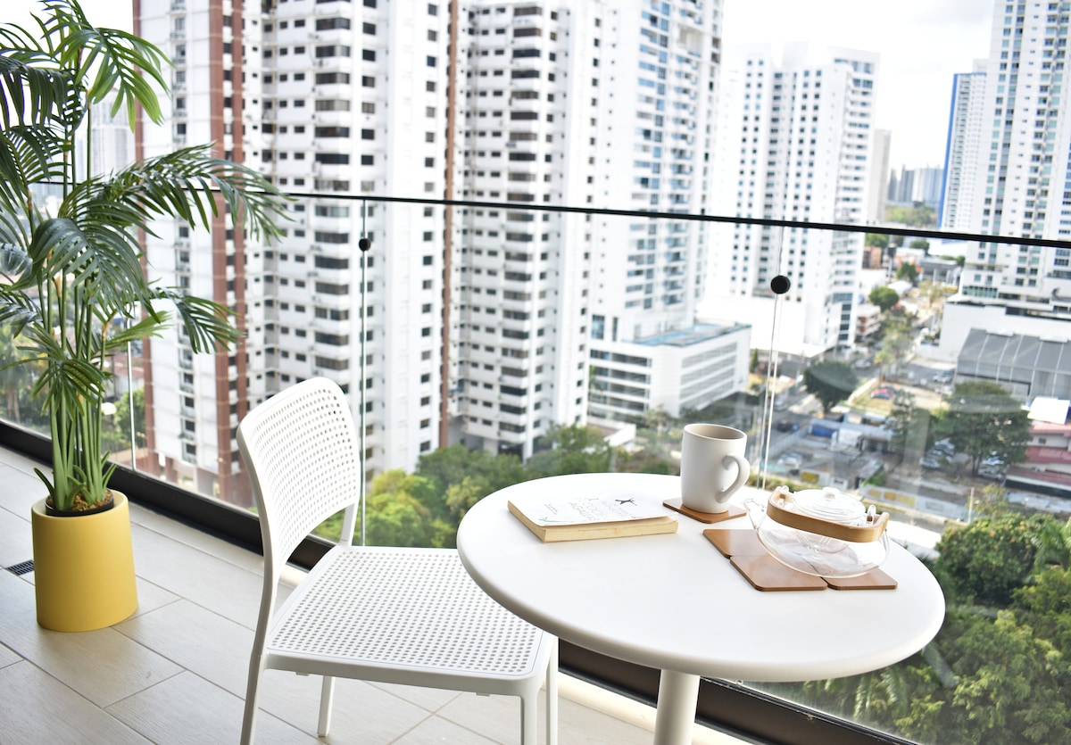 ✨ Bright and charming apartment with balcony and an unbeatable location 🌇 🚶♂️Walk 5–10 mins to Restaurants, Supermarkets, Multiplaza Mall, Cafes. ☕🛍️🍽️ 💻 Ideal for remote workers — 750 MB internet speed, 100 Up⚡📶 Building Highlights: 🏋️♂️ Gym 💻 2 Co-Working Spaces 500 MB internet speed 🏊 Rooftop Terrace Pool 📍Located in San Francisco, Panama City | 🧭 Explore the city easily | 🚗 Uber-Friendly *There may be noise from nearby construction.