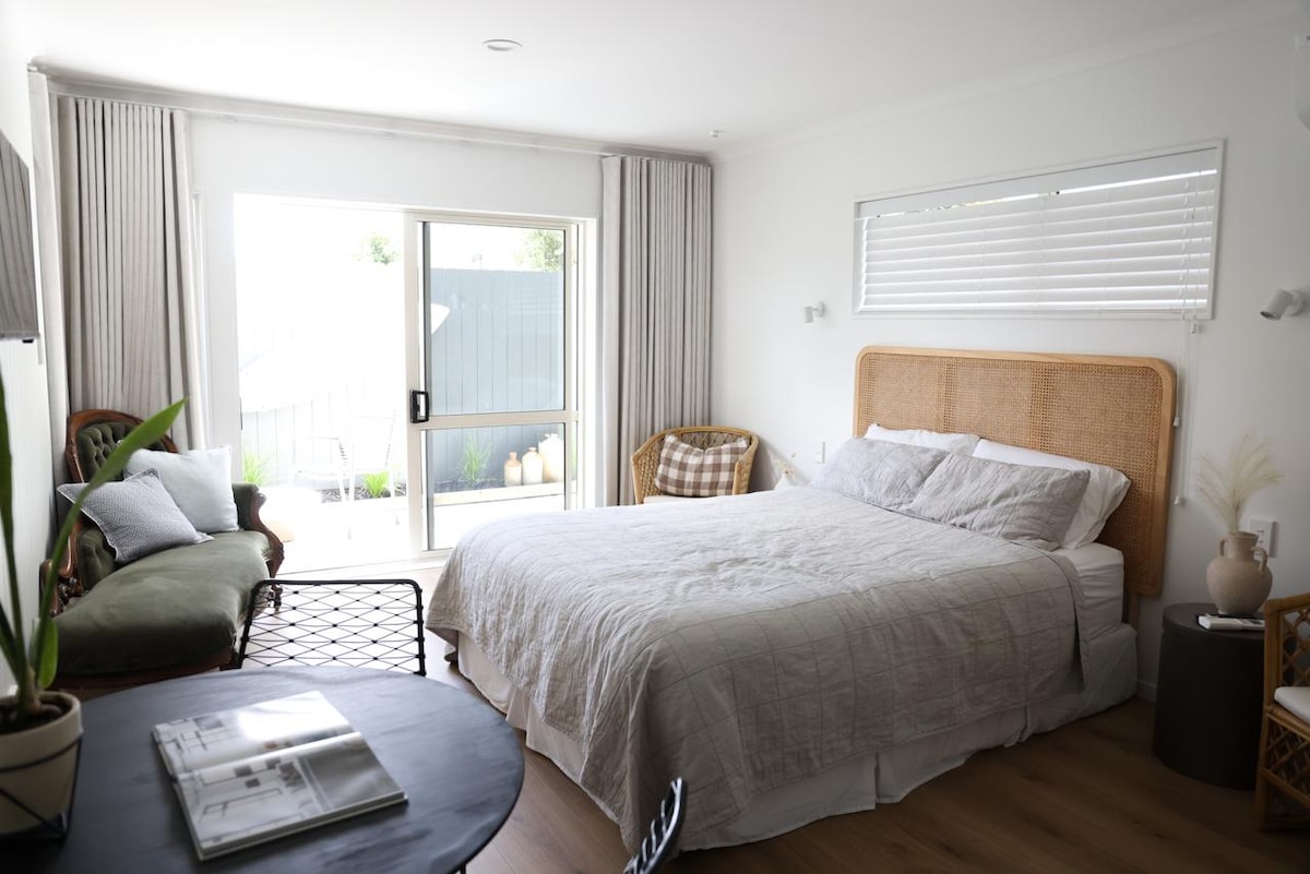 Nuevo estudio independiente con entrada privada. Cerca de las principales rutas de transporte a Tauranga y la playa de Mount Maunganui. Cocina americana, horno, ollas, tazas, sartenes, platos. Nevera pequeña, horno, jarra, tostadora, artículos básicos para el desayuno, leche, muesli, té y café. Baño con inodoro, ducha y secador de pelo. TV, Netflix, wifi disponible. El estudio tiene puertas que dan al exterior. Bomba de calor. Se accede al estudio a través de un teclado numérico/puerta cerrada en la valla delantera junto al buzón. Una plaza de aparcamiento en la propiedad.