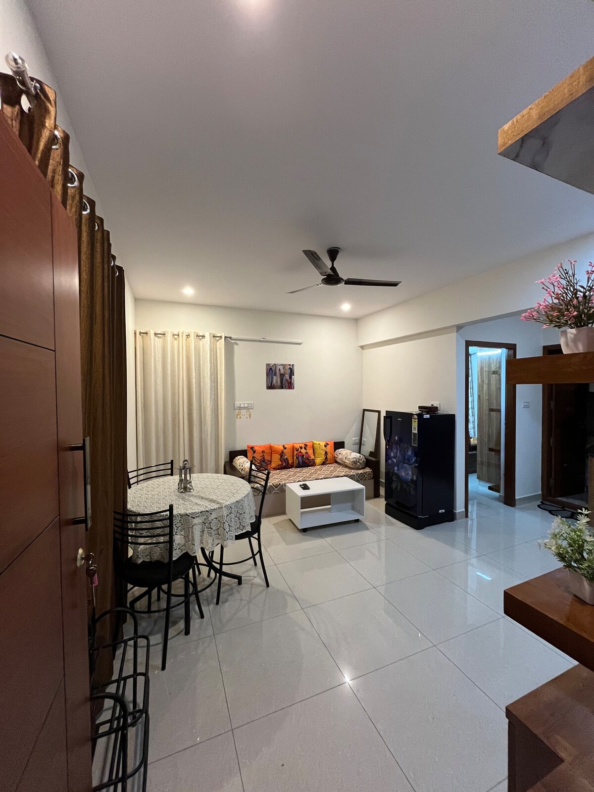 Bienvenido a nuestro nuevo y espacioso apartamento 2-BHK, ideal para familias y parejas que buscan comodidad y conveniencia. Los dormitorios tienen camas tamaño queen con colchones ortopédicos y aire acondicionado para una noche de sueño reparador. Relájate en la gran sala con un televisor inteligente de 43 pulgadas, wifi ultrarrápido y un comedor dedicado. Viene con dos baños súper limpios con artículos básicos de baño. La cocina totalmente equipada incluye electrodomésticos de alta calidad y vajilla para tus aventuras culinarias.