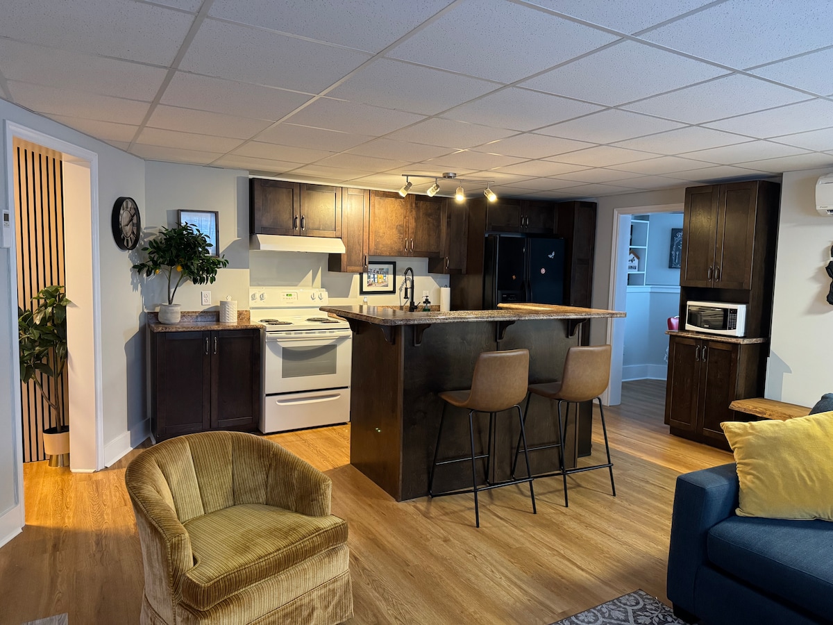 Situado en el centro de St. John's, en la hermosa urbanización Kenmount Terrace, encontrarás nuestro apartamento de un dormitorio, luminoso y tranquilo. A pocos minutos del distrito comercial Kelsey Drive, Kenmount Rd, Cineplex Theaters, Avalon Mall y una gran cantidad de otras opciones comerciales y gastronómicas. Decorada con buen gusto con amplias comodidades que incluyen estacionamiento fuera de la calle para uno, TV de 65 pulgadas con cable premium, WiFi, nevera, estufa, microondas, utensilios de cocina, lavadora/secadora, aire acondicionado y más.
