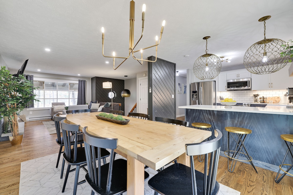 Disfruta de la exuberancia en el corazón del monte Pocono con nuestra casa de 5 dormitorios y 3 baños. Escapa de las multitudes de la ciudad y disfruta de la naturaleza en todo su esplendor junto a la hoguera. ¡Convenientemente ubicado cerca de atracciones y actividades para una diversión y relajación eternas! El diseño lujoso, combinado con divertidos servicios, te dejará asombrado. Seguramente disfrutarás de tu estancia aquí: ✔ 5 cómodos dormitorios Sala de estar de diseño✔ abierto Cocina ✔ Totalmente Equipada Terraza ✔ exterior. ✔ Brasero exterior Sala de✔ juegos y bar Televisores ✔ inteligentes Wifi ✔ ultrarrápido Parking ✔ gratuito