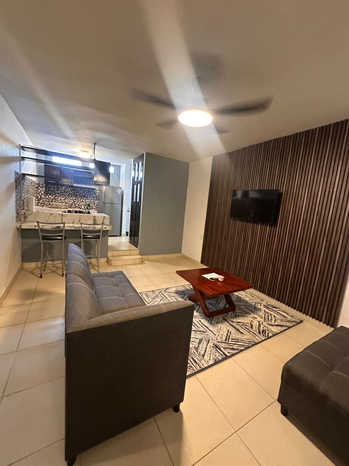 Relájate en este espacio tan tranquilo y elegante departamento de 2 cuartos y 2 baños, ideal para parejas o viajes de trabajo, Situado cerca de la refinería de Dos Bocas, ofrece comodidad y conveniencia. Totalmente equipado con cocina moderna, aires acondicionados, WiFi gratuito y 2 Tv's. Perfecto para estancias cortas o largas, en una zona segura y tranquila, con fácil acceso a tiendas y restaurantes locales. ¡Reserva ahora y disfruta de una estancia productiva y acogedora!"