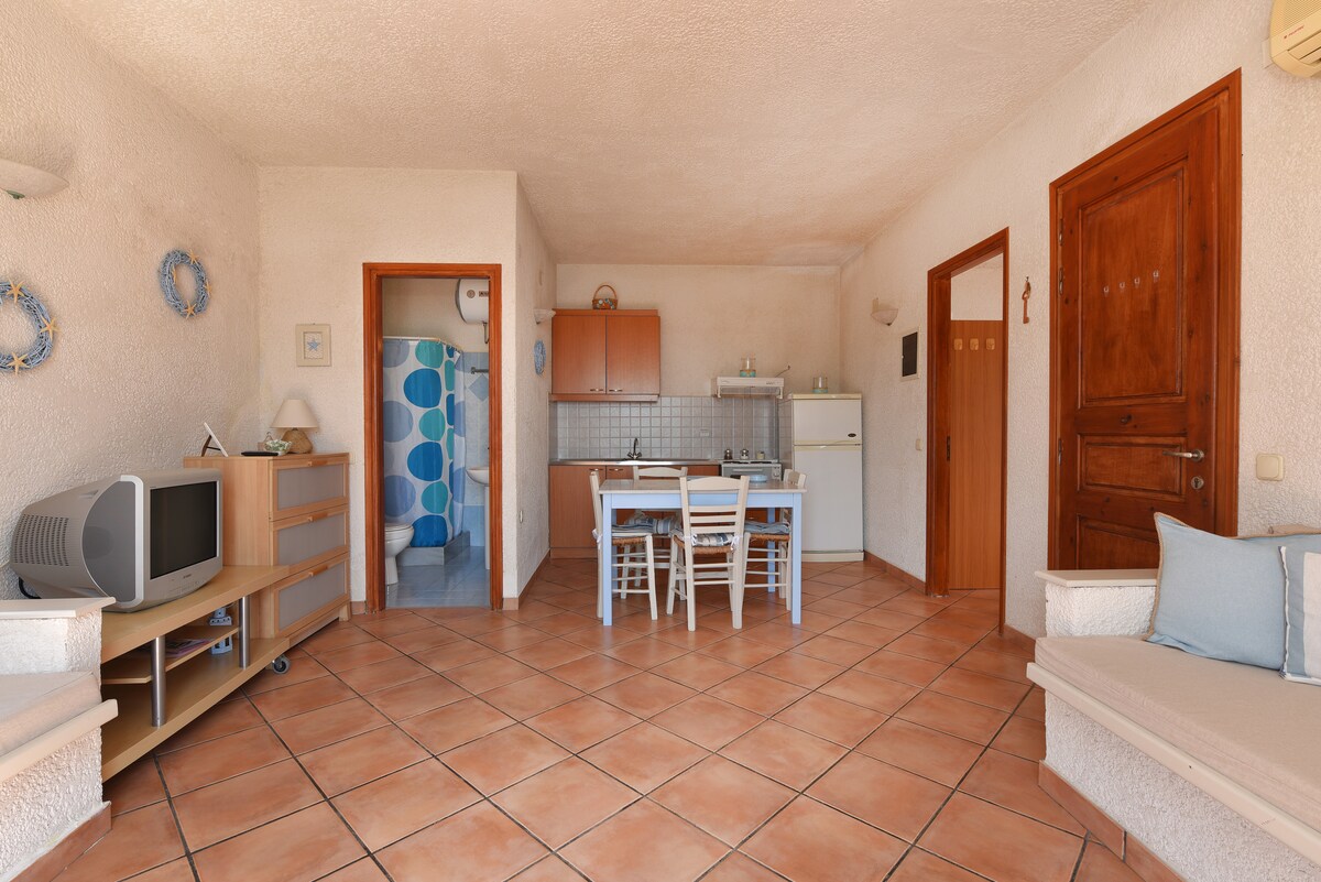Apartamento de un dormitorio totalmente equipado con vistas frontales al mar. Una cama doble en el dormitorio y 1 sofá cama en el salón, cocina totalmente equipada (horno, nevera-congelador, lavavajillas, 4 fogones), baño con ducha, lavadora, terraza privada con sillas y mesa. Acceso a un patio compartido con acceso directo al mar (rocas) donde los huéspedes pueden darse un baño por la mañana. Vistas frontales al mar desde la sala de estar y el dormitorio. A pocos pasos del centro de Ermoupolis.