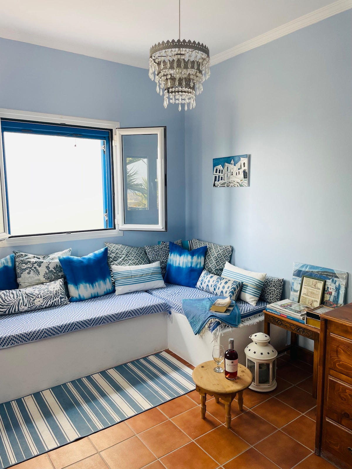 Bienvenido a nuestro departamento, una escapada única de relajación a solo unos pasos del mar. Aquí encontrarás un ambiente tranquilo y acogedor que combina la estética tradicional con las comodidades modernas. El amplio patio al aire libre está equipado con una mesa y sillas, ofreciendo el lugar perfecto para cenar o relajarse bajo el sol. El interior del apartamento es luminoso y espacioso, con grandes ventanales que permiten que la luz natural llene el espacio.