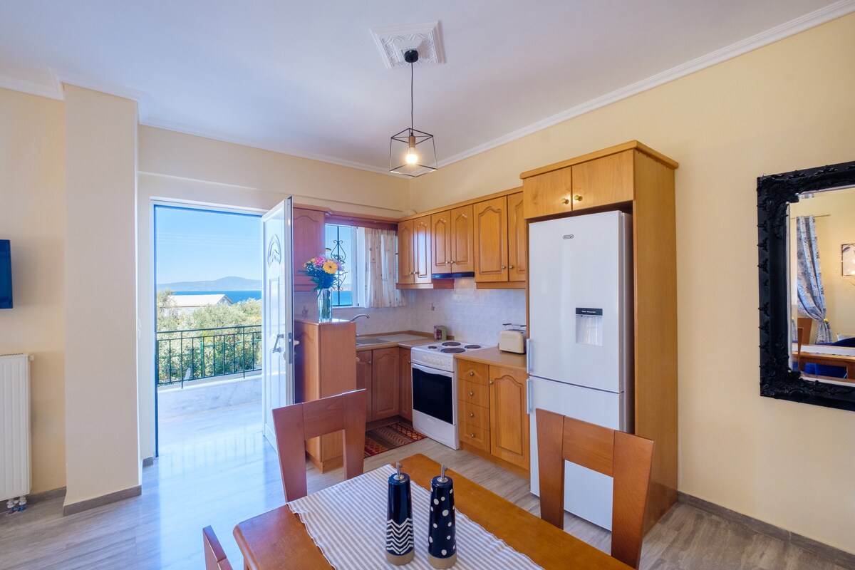 Una lujosa casa totalmente equipada, a 1 km de la playa, con vistas panorámicas al mar del golfo de Messenia, te ofrecerá una estancia increíble durante tus vacaciones en la zona. ¡Disfruta del sol en el balcón de la casa y relájate con tu bebida favorita contemplando la belleza de los alrededores! ¡Un destino ideal para tus vacaciones familiares! ¡Wifi gratuito y aparcamiento disponibles! ¡No te lo pierdas!
