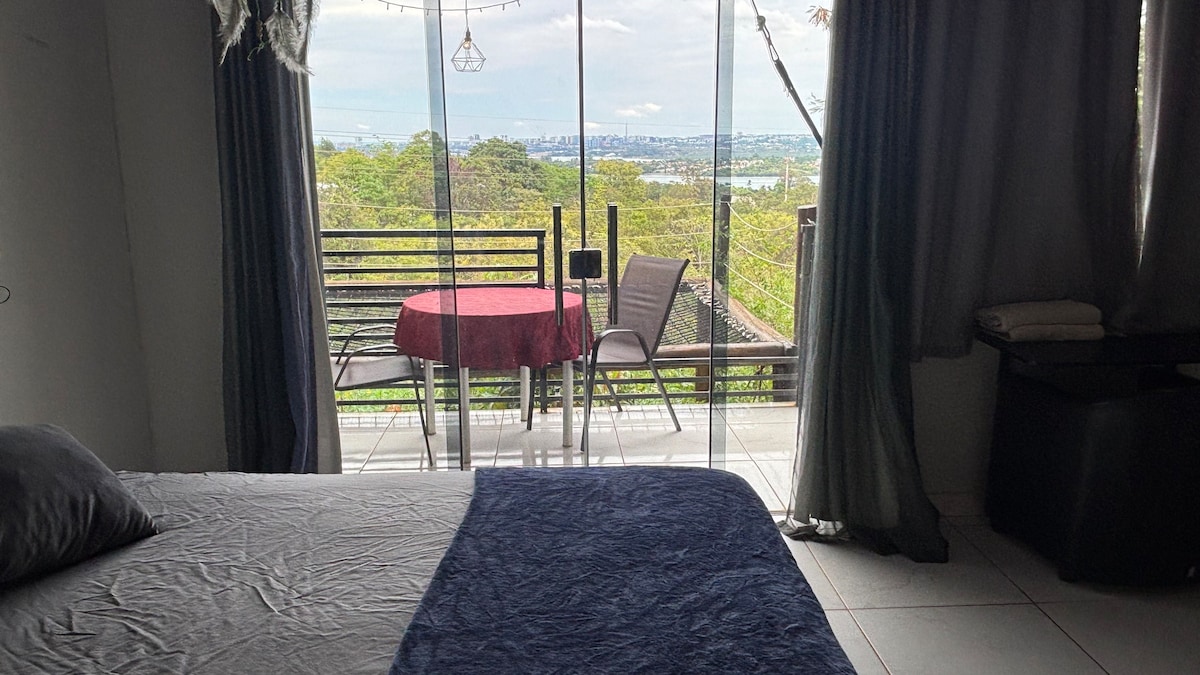 Este encantador apartamento de 51 m2 ofrece un balcón con una impresionante vista del lago Paranoá, además de estar frente al manantial y tiene un gran balcón privado. El espacio interior está equipado, con una cocina completa, nevera, sala de estar, suite con cama matrimonial y un cómodo sofá cama. Instalaciones como Internet, TV por cable, ropa de cama y toallas también están disponibles, que proporcionan comodidad y comodidad a los huéspedes.