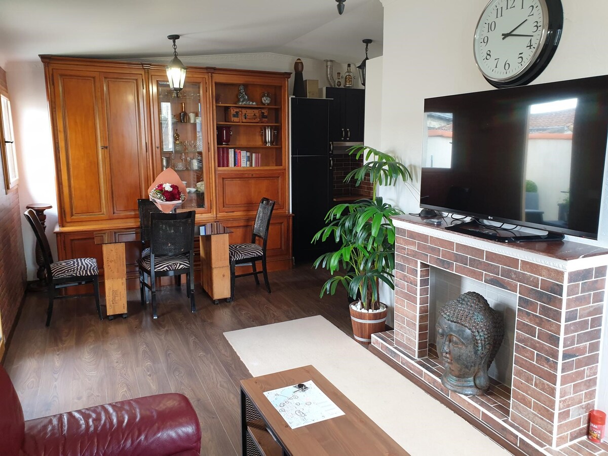 Venez découvrir notre charmant appartement avec vue sur un cadre idyllique, entre végétation, oiseaux et autres petits animaux... Situé à Pessac, à deux pas de toutes commodités (transports en commun, train, avion, restaurants, boutiques...), vous pourrez vous y reposer au calme lors de votre séjour en région bordelaise. Vous ne manquerez pas d'activités à faire à proximité, été comme hiver, et nous serons ravis de vous conseiller ! [Petit déjeuner/repas possible, voir conditions]