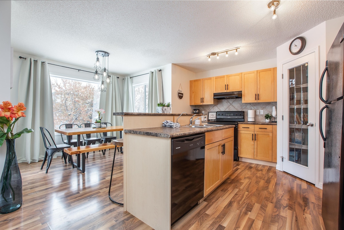 ¡Relájate y desconecta en este nuevo y elegante espacio de aspecto zen! Disfruta de la pared de características que se ilumina y proporciona una experiencia zen. Estamos ubicados a 6 minutos del famoso centro comercial West Edmonton Mall, a 15 minutos del centro de la ciudad y de la Universidad de Alberta. ¡También estamos a solo unos minutos del campo de golf Lewis Estates y del casino Rivercree! Nos encantaría invitarte a alojarte aquí. ¡Reserva hoy tu estancia con nosotros!
