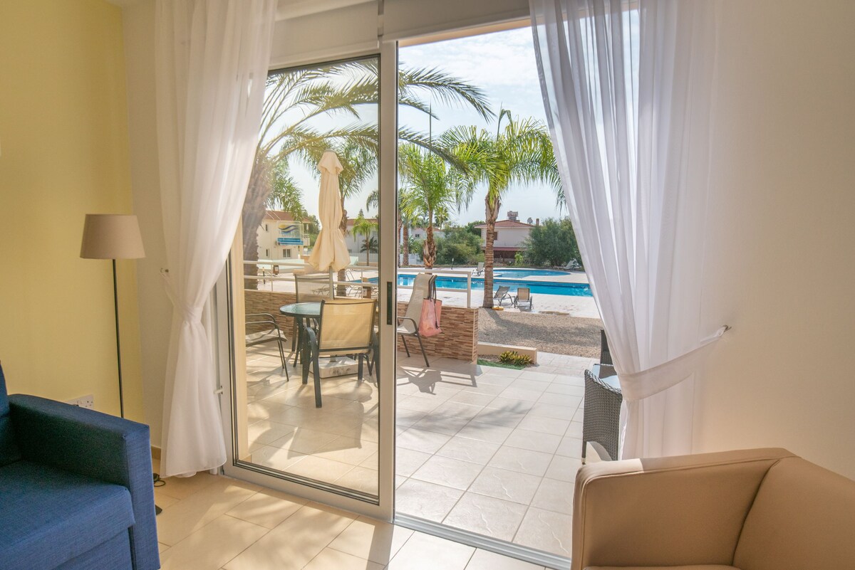 NARCISSOS ‘NISSI BEACH’ Apartment C3 is a well-kept ground floor one-bedroom apartment located on the exclusive Nissi 3 development just 400m from Nissi Beach and within walking distance to the major wedding hotels on Nissi Avenue, nearest the Nissi Beach Resort. Location is within walking distance to all possible amenities and facilities as well as to main touristic Ayia Napa.