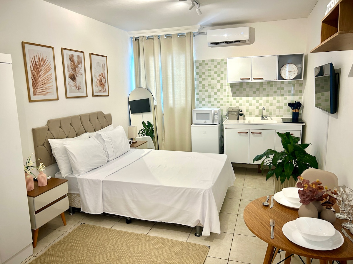 Estudio completo y tranquilo para hasta 3 personas, junto al metro, frente a Praia do Flamengo. Ubicación estratégica, cerca del aeropuerto Santos Dumont y de los principales lugares de interés de la ciudad. Portero las 24 horas, autorregistro, cocina completa, 1 cama tamaño queen, 1 sofá cama, televisor inteligente de 42 pulgadas, internet de 350 mega, aire acondicionado dividido, ventilador de techo, artículos de tocador, lavadora, ropa de cama, toallas, cortinas opacas, ducha de gas.