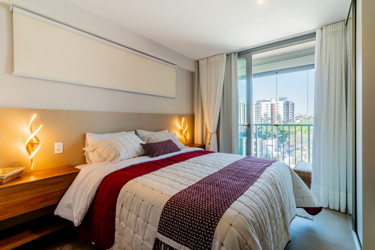 Cerca de la Av. Paulista. Ubicación privilegiada, vistas increíbles, confort y ocio. Dormitorio, baño, oficina, sala de estar, cocina americana, lavandería, balcón, TV por cable, internet wifi / fibra óptica muy rápida de 400mbps, 2 unidades de aire acondicionado, gimnasio, cancha, piscina climatizada, sauna seca y húmeda. El huésped tiene uso exclusivo del apartamento y las zonas comunes. TIENDA DE CONVENIENCIA. Ideal para viajes de negocios. No hay detector de monóxido de carbono, no hay gas en el condominio. 1 espacio de estacionamiento para huéspedes.