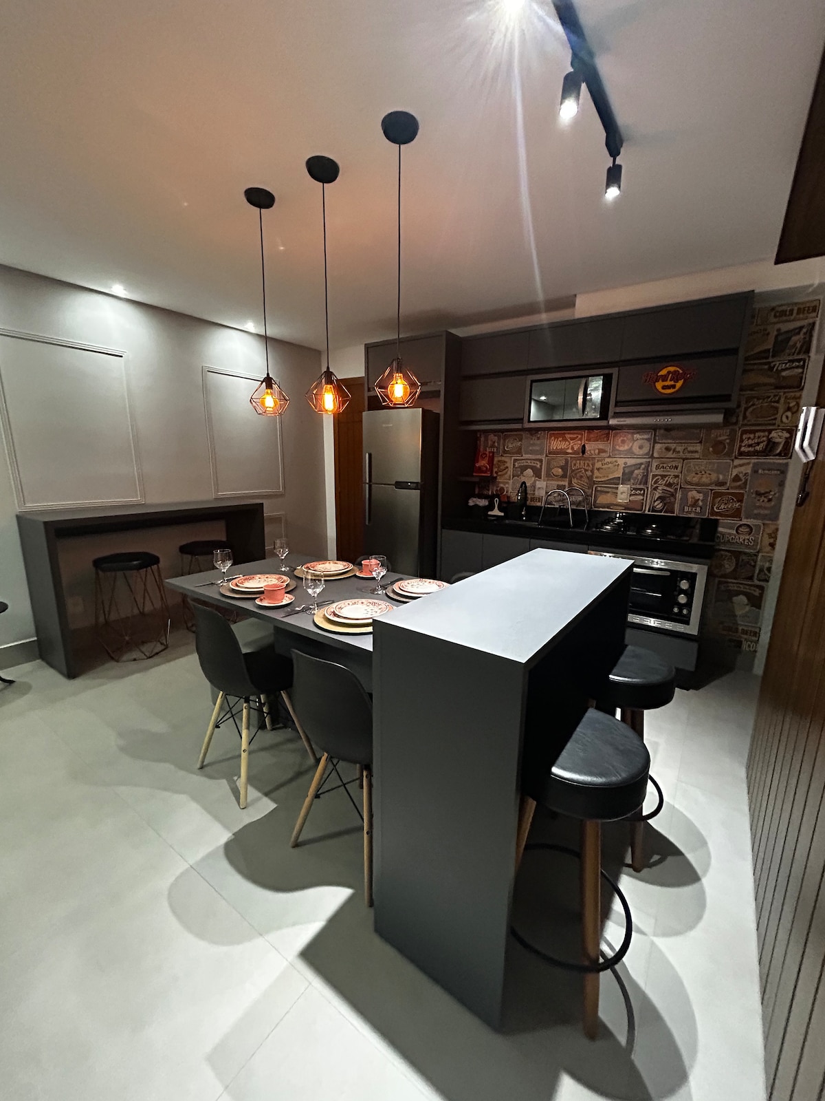 Apartamento moderno, acogedor y completo, ideal para aquellos que buscan comodidad y practicidad. Tiene una sala de estar integrada con un cómodo sofá, TV de 65 pulgadas y mesa de comedor. La habitación con aire acondicionado con cama cómoda y ropa de cama de calidad, lo que garantiza excelentes noches de descanso. Cocina equipada con nevera, estufa, armarios, utensilios y lavadora. Baño cerrado con vidrio. Condominio tranquilo, organizado y seguro, con espacio de estacionamiento. Perfecto para parejas, familias o viajes de trabajo.