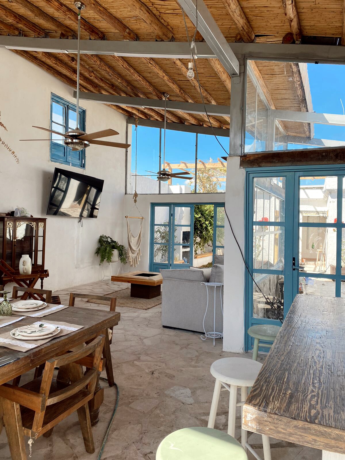 En medio del campo se alza una casa llena de obras de arte, con techos de carrizo y madera, en donde todo es pleno y sereno. Dentro de sus espacios un hogar cálido te espera, donde se siente lo fresco del estuco, la tierra del adobe y sus pisos de barro. De día podrás apreciar a través de sus techos altos, la luz del sol natural, y al anochecer, las luces se encienden con delicadeza; y en cada rincón se crea un ambiente lleno de amor, calma y belleza. Bienvenido a tu hogar.
