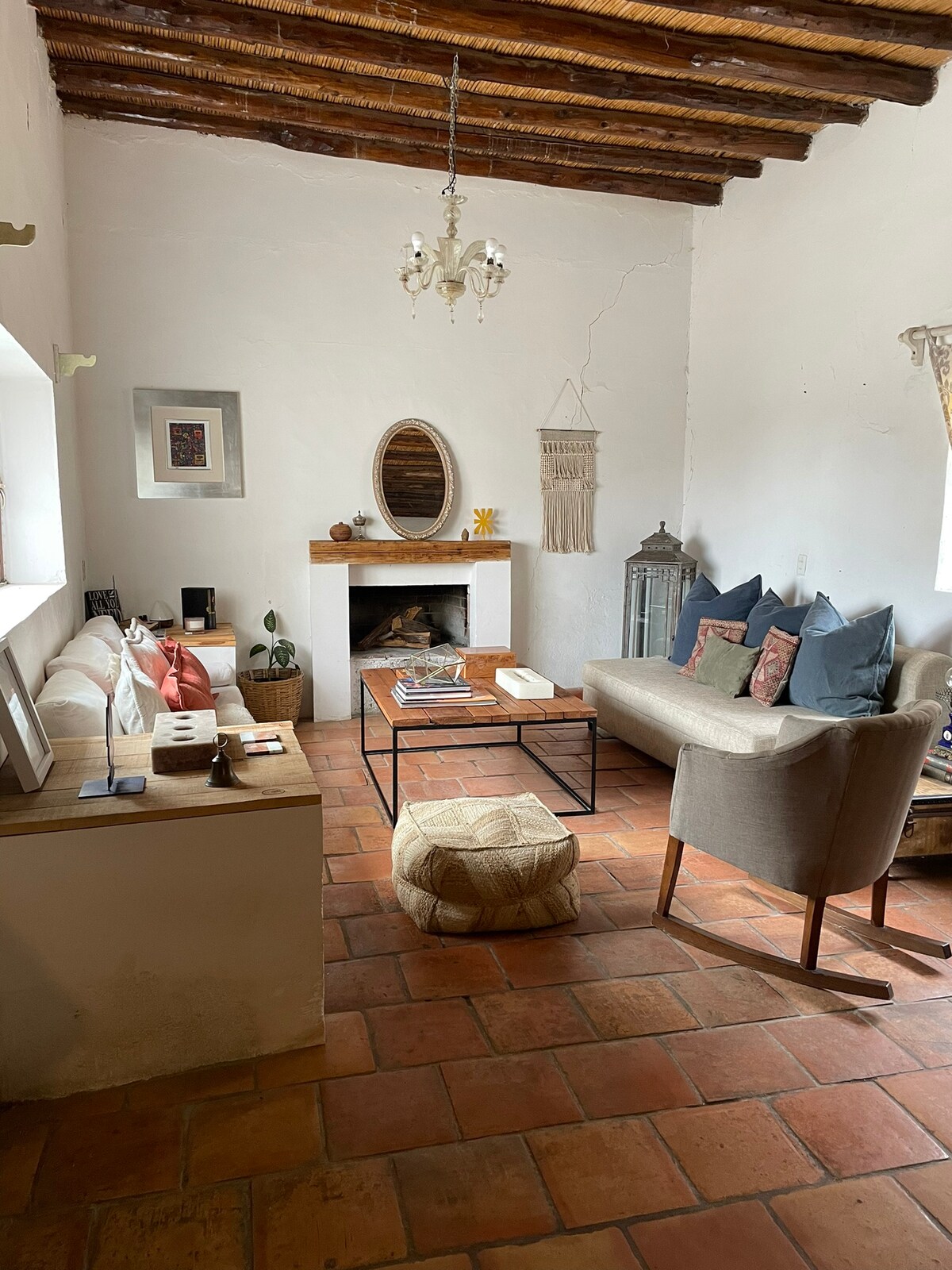 Linda casita con opción de una 3a recámara con baño (para 2 personas extras) Tiene un patio central con asador, mesa de jardín, con iluminación. Cuenta con cocina equipada con estufa, horno de microondas, vajilla y cuchillería, en el comedor una chimenea, clima mini split frío/calor, sala hay dos sofás con una TV de 55” con conexión a internet y cuenta con el servicio de Netflix . Todas las áreas con abanicos de techo y la sala-comedor y las dos habitaciones con minisplit f/c