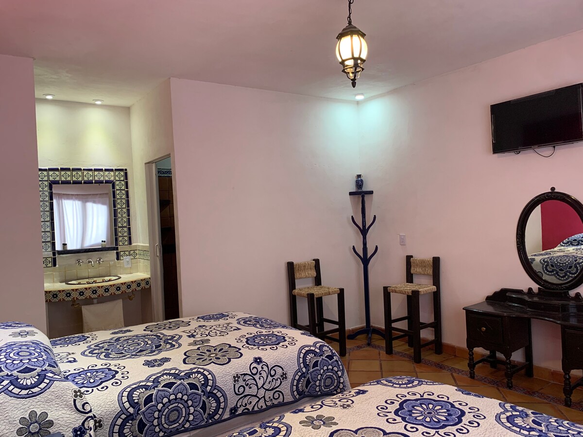 No querrás irte de este lugar tan único y encantador. suite sencilla cuenta con -wifi -1 cama queen -televisión S-Mart TV -netflix -mini split frío / calor -cafetera -frigobar -1 baño completo con agua caliente