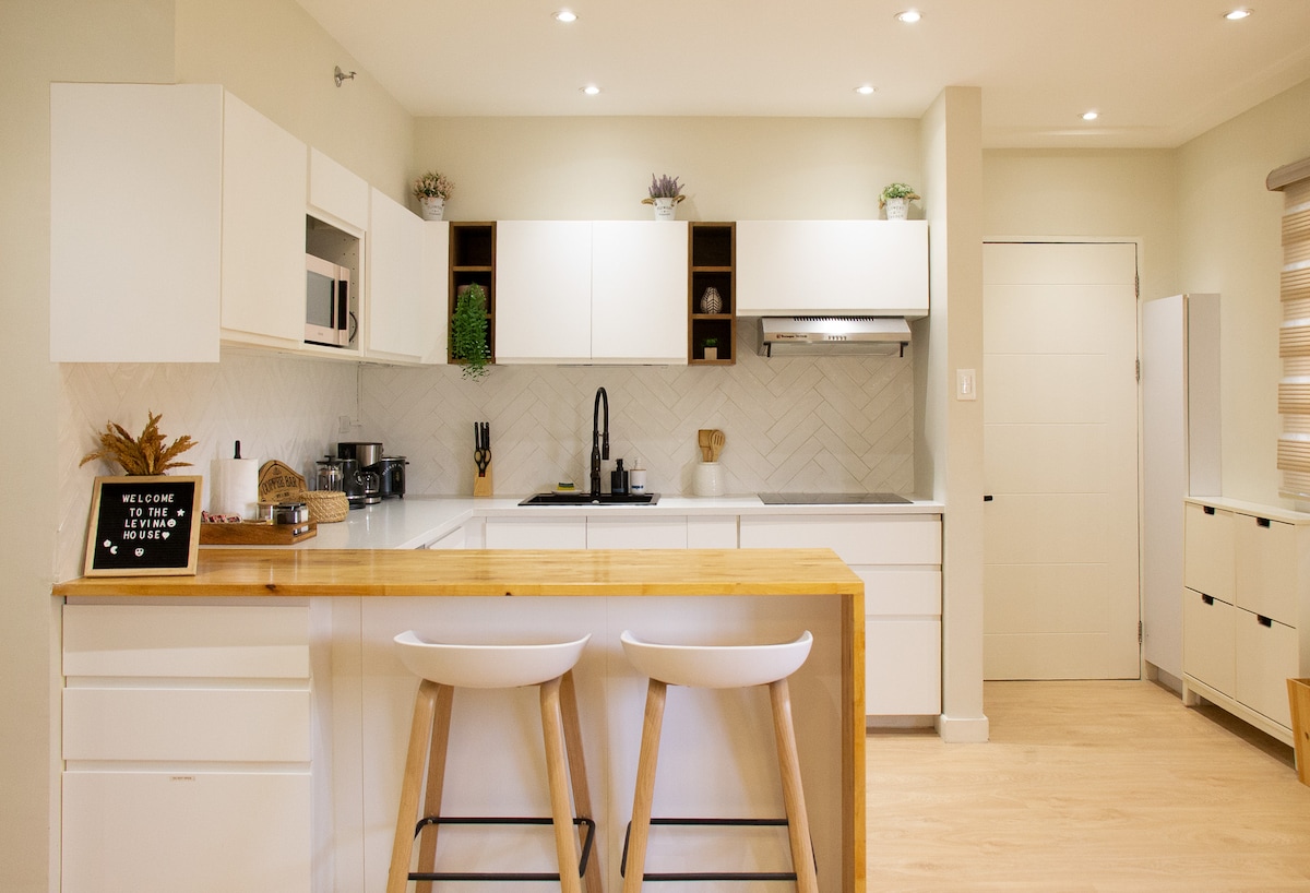 Levina House es nuestro encantador y relajante refugio ubicado dentro del complejo Levina Place Condo en Jenny's Avenue en Pasig. Este apartamento de 2 dormitorios y 2 baños ofrece acogedoras y minimalistas habitaciones tamaño queen. Relájate viendo películas en streaming desde varias plataformas como Netflix, Disney+, HBO y Amazon Prime Video en nuestro televisor inteligente de 65 pulgadas, disfruta de nuestro internet de alta velocidad y prepara deliciosas comidas con facilidad en nuestra cocina totalmente equipada. Nos alegra verte por aquí. Bienvenido a casa.