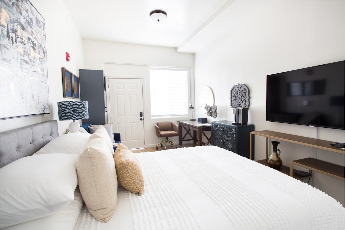 Este es un increíble estudio ubicado en el corazón de Santa Bárbara. La mundialmente famosa State Street está a tres cuadras y estás a pocos minutos de The Funk Zone, Pier, Harbor, Mission y restaurantes de alta cocina. Tenemos otras dos unidades en la propiedad y al huésped le encanta la ubicación y el fácil acceso a la autopista 101 con destino al sur y al norte.