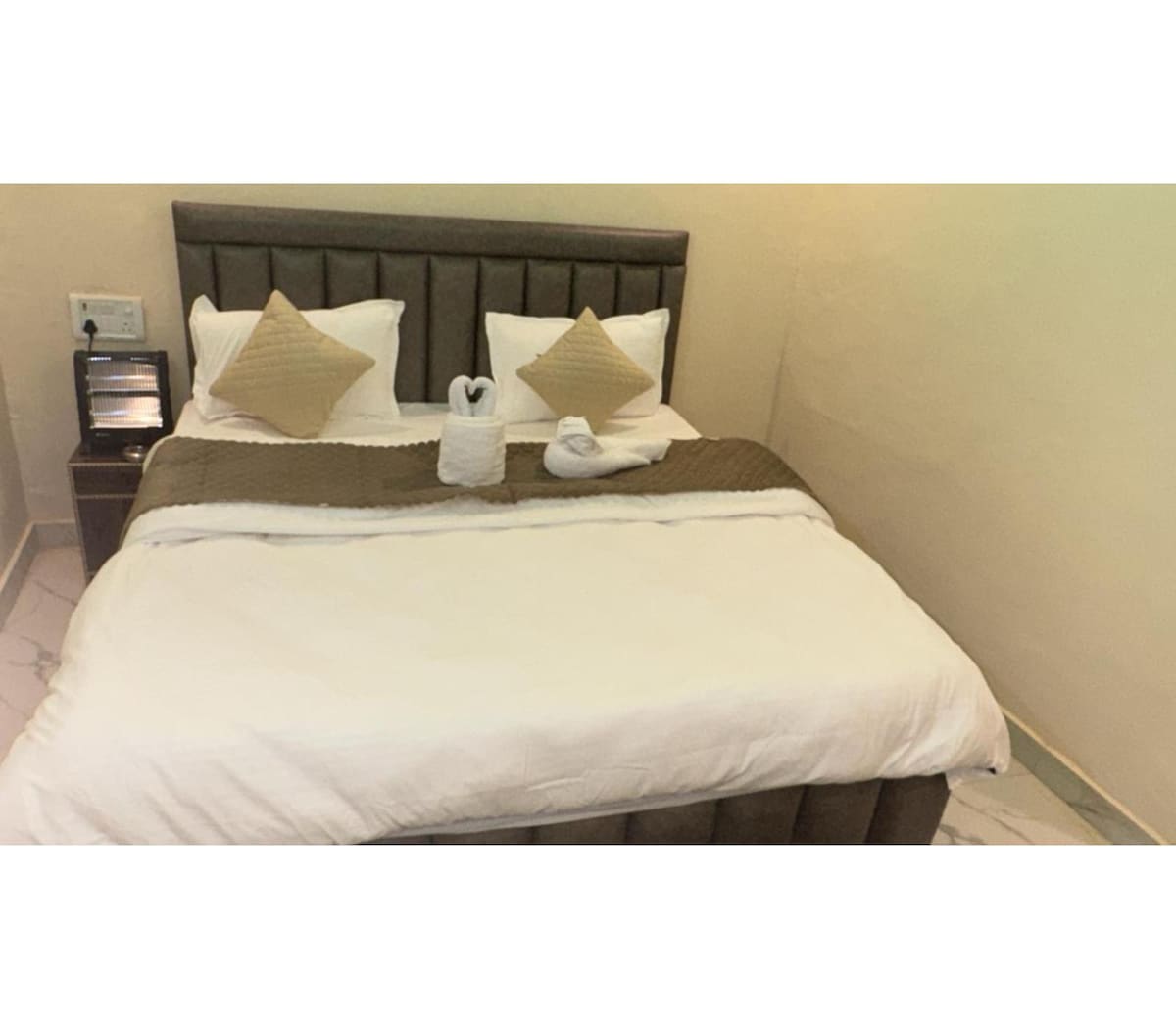 **Habitación Deluxe King | Limpia y cómoda** Una cómoda habitación Deluxe con una cama doble tamaño king, aire acondicionado y un baño privado adjunto. Adecuado para parejas o familias pequeñas, con un colchón adicional disponible bajo petición para un huésped adicional. Incluye wifi de alta velocidad, servicio de limpieza diario, respaldo de energía y acceso a áreas comunes. Ideal para viajeros que buscan una estancia limpia, tranquila y conveniente en Haridwar.
