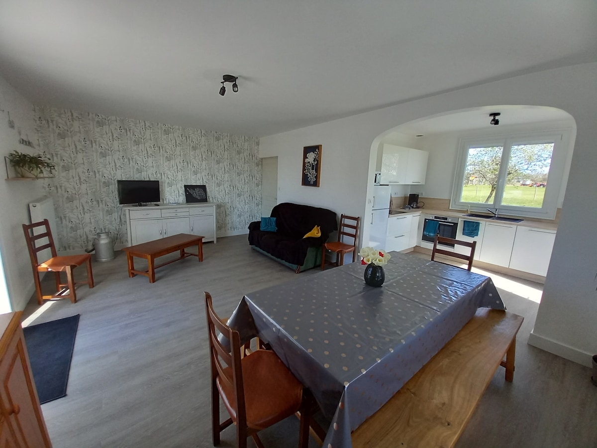 Respeto del protocolo de limpieza reforzada establecido por Air BnB Casa de campo de 130 m2 acondicionada en un antiguo granero distribuido en 2 niveles. Planta baja: sala de estar con zona de cocina y zona de estar. Aseo separado. 1 dormitorio con baño privado (+ lavadora). Planta superior: 1 dormitorio con baño privado + cama para 2 niños. WC separado. Exterior: patio inglés de 93 m2 con muebles de jardín + barbacoa + sombrilla + tumbonas. Espacio verde no vallado accesible desde el lado de la casa de campo y desde el lado de la casa.