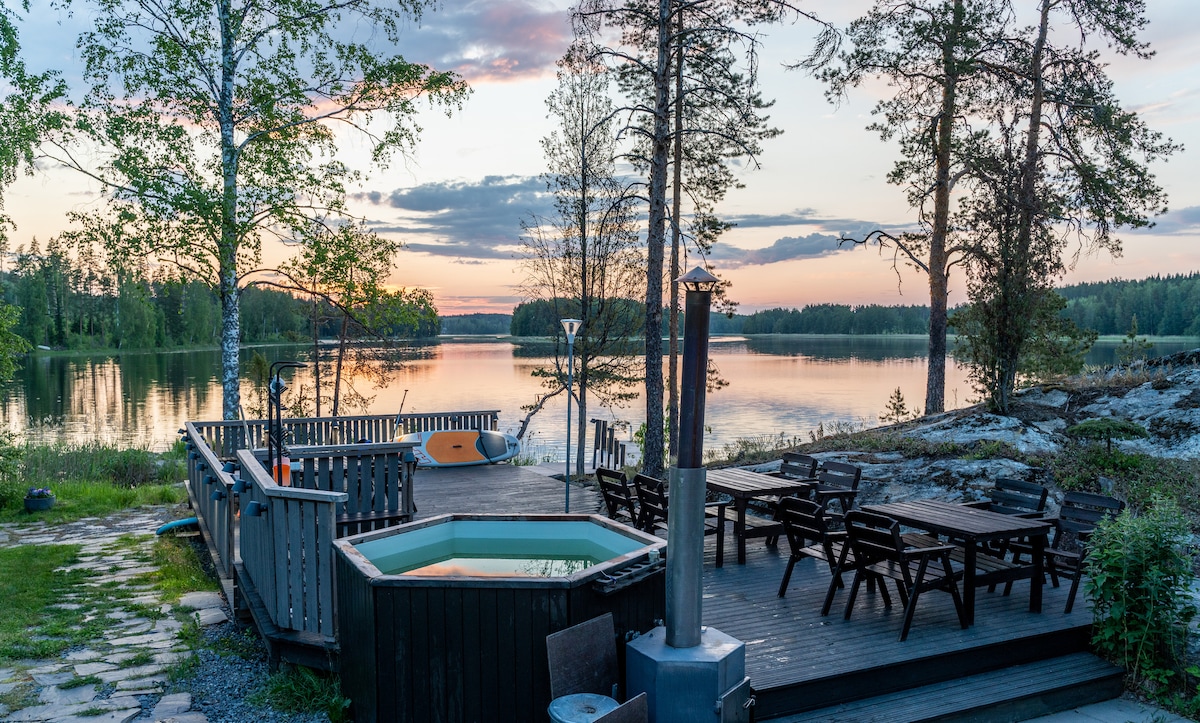 Escápate a Pirttiniemi: una cabaña privada junto al lago escondida en el bosque, perfecta para parejas o viajeros solitarios. Disfruta de la sauna de leña, las tranquilas vistas al lago, los momentos de fogata y el ritmo tranquilo de la naturaleza finlandesa. Desconéctate y relájate en este romántico retiro de estilo fuera de la red. Nada, camina, pesca en un estanque privado de salmón cercano en Survaa, asa al aire libre en la terraza o simplemente relájate bajo las estrellas. Un escondite rústico pero acogedor para aquellos que buscan espacio, quietud y simplicidad junto al lago.