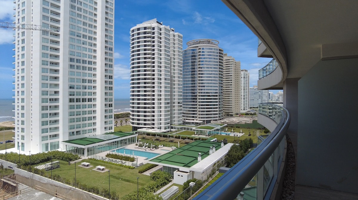 Precioso apartamento con vistas al mar a 120 metros de la playa, 1 dormitorio, living, baño, cocina y balcon, totalmente equipado y super comodo. El edificio cuenta con piscina climatizada interior con un jacuzzi , gimnasio, recepcion, dos piscinas exteriores y parrillero , un parrillero en la terraza con vista a la playa Mansa y la Brava y tambien parking. En una zona llena de restaurantes, mercados y mas. 😊