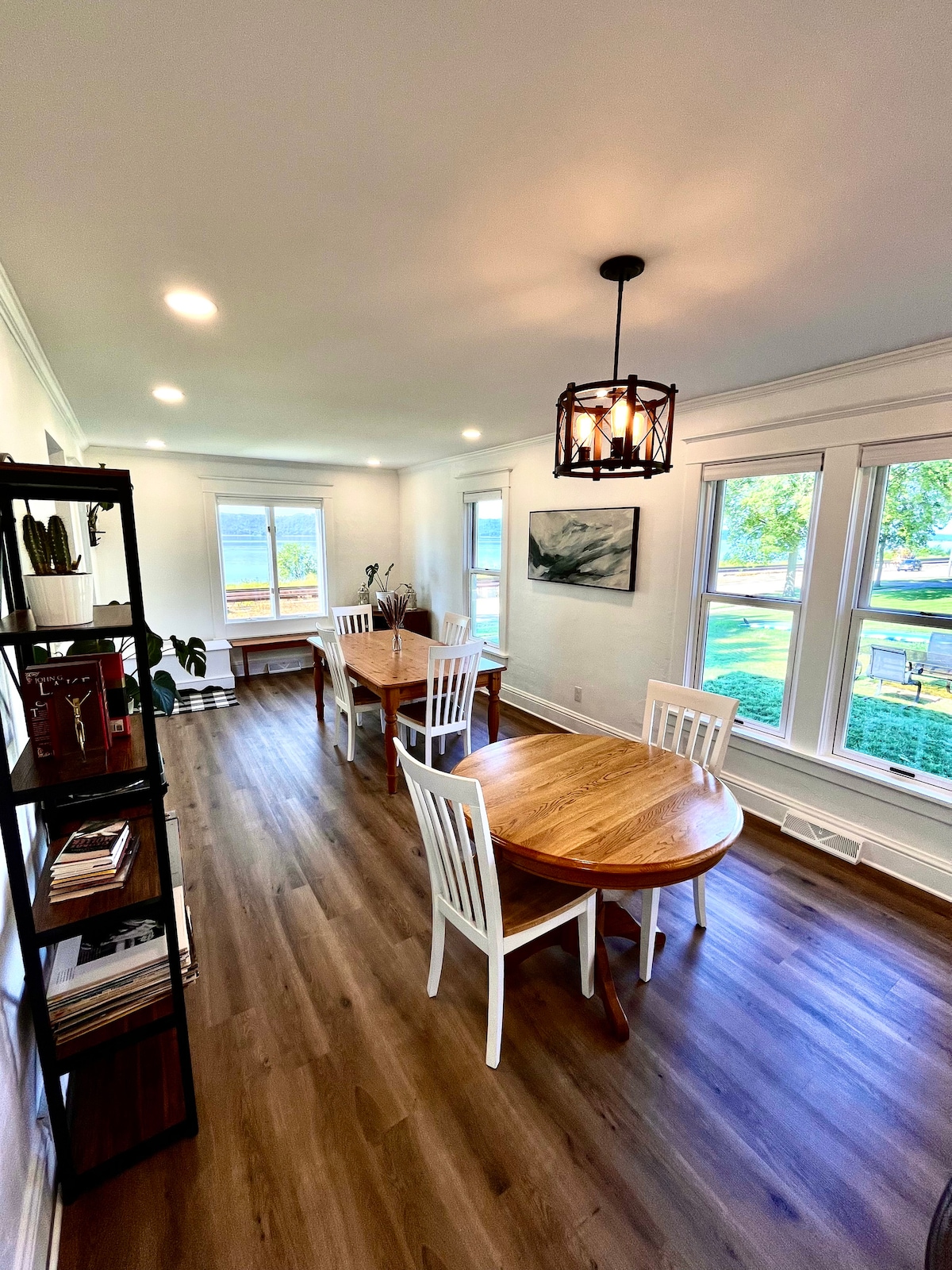 Welcome to our newly renovated Pepin lake house! The perfect place for a couples getaway, friends weekend, family vacation, and everything in between. Enjoy the beautiful panoramic view of Lake Pepin from the front window while sipping a cozy cup of coffee, or watch the sunset with a glass of wine around a bonfire. The spacious dining room and kitchen are perfect for sharing a warm meal with loved ones, while the bar/living room promises a good time!