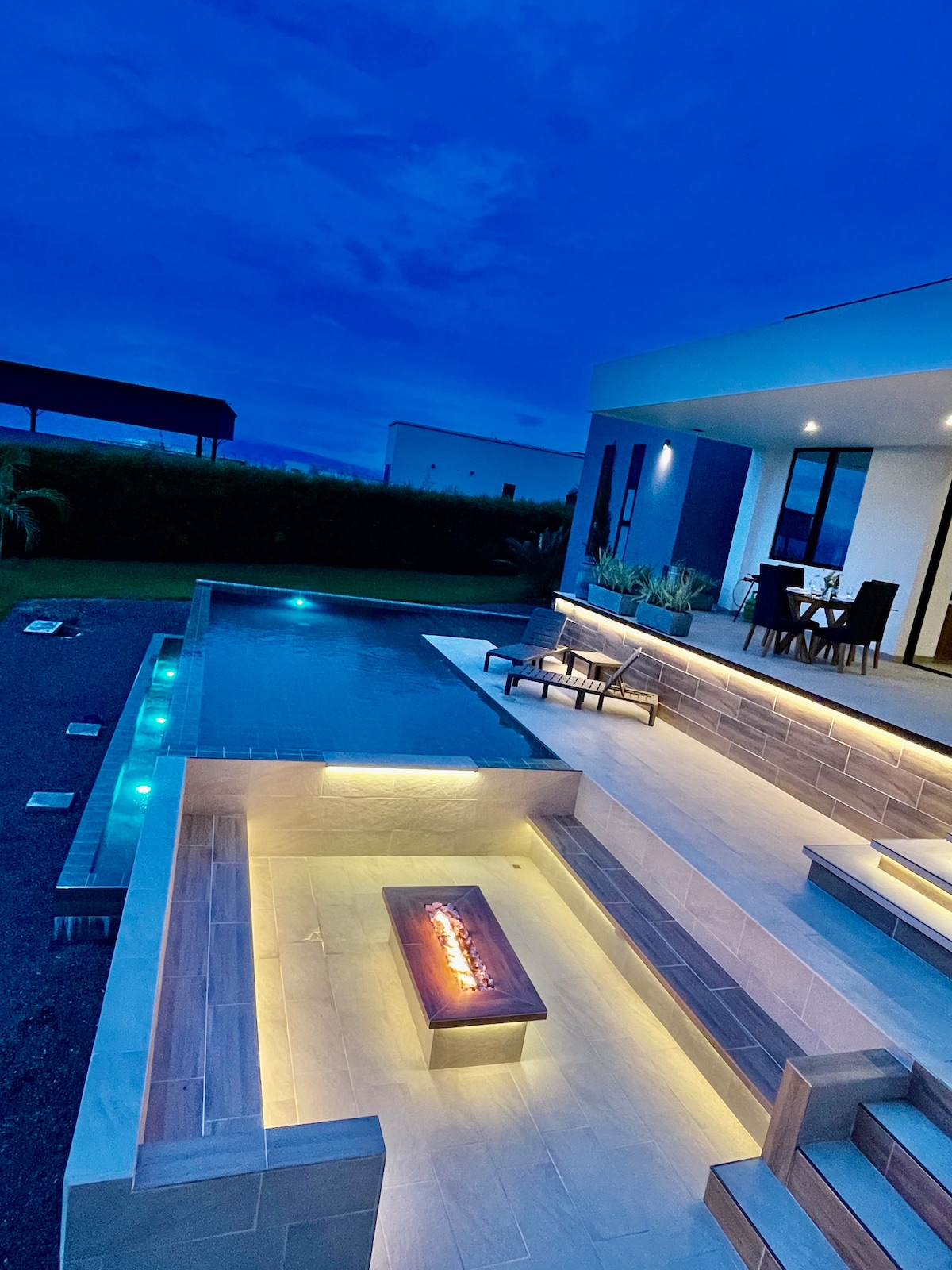 Conexión perfecta entre lujo y naturaleza… Relajate en nuestra piscina infinita con vistas impresionantes a las montañas durante el día y disfruta de noches románticas junto al cálido fire place. Aquí encontrarás descanso total, despertando con el canto de las aves y rodeado de naturaleza. Explora actividades cercanas como paseos a caballo, el zoológico y atracciones familiares, todo mientras estás a minutos de restaurantes, tiendas y cafés. ¡Reserva y vive la experiencia perfecta!