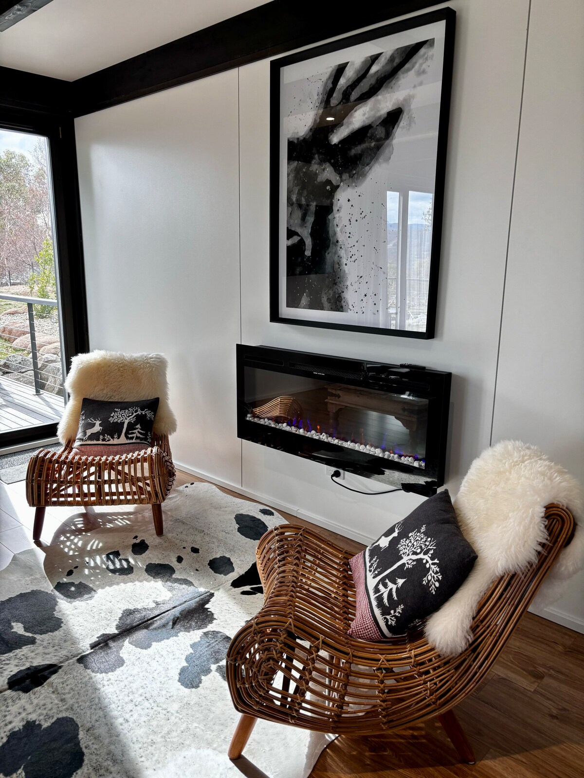 Escape to our luxurious Snowy Mountains retreat, blending designer style with cozy comfort. Relax by the log burner on cold nights with underfloor heating for toasty toes, or soak up summer evenings on the spacious sun deck. Amenities include a chef's kitchen, 65" Smart TV, outdoor bio-ethanol firepit, king beds and a garage for all your gear. Perfect for unwinding after your alpine adventures, The Lodge is located just 35 mins from Thredbo and Perisher ski resorts and 7 mins from Jindabyne.